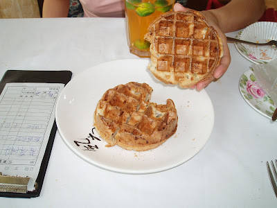 怕吃太多點了兩個甜點跟一個麻糬口味的鬆餅,甜點太好吃了來不及拍就剩下紙屑了,囧。